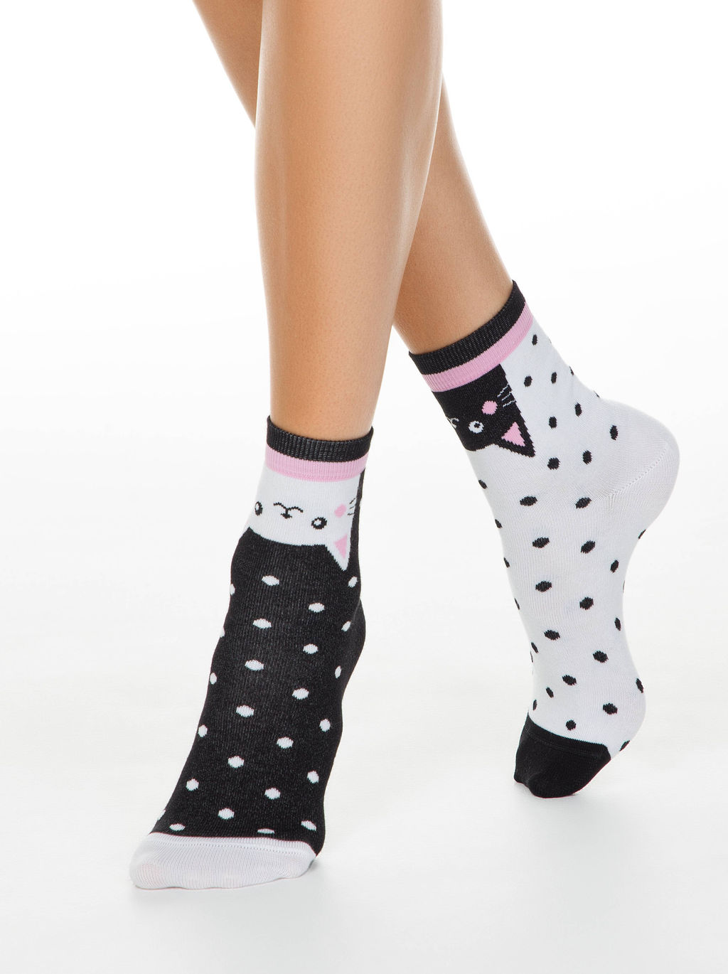 Цена за 2 пары. Носки Классические CONTE Хлопковые носки HAPPY c рисунками "Котики" черный-белый