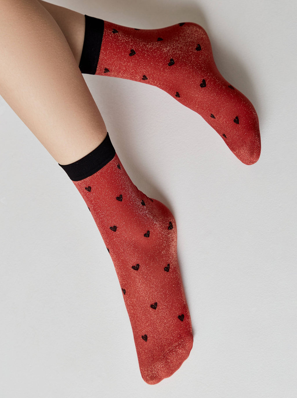 Артикул: CONTE FANTASY Сияющие носки с объемными рисунками Hearts gold-rosso