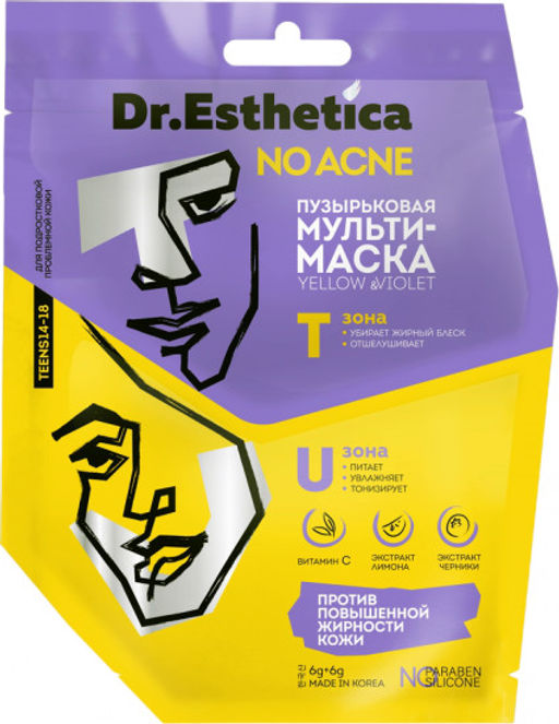 Пузырьковая мульти-маска PINK&GREEN 6+6 г DR. ESTHETICA NO ACNE TEENS