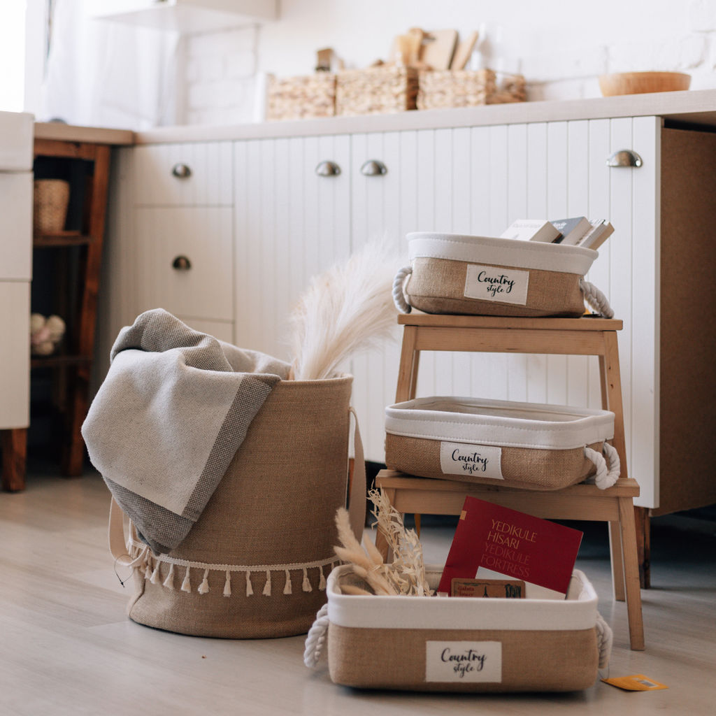 Корзина бельевая с ручками "Кантри", Д350 Ш350 В420, бежевый