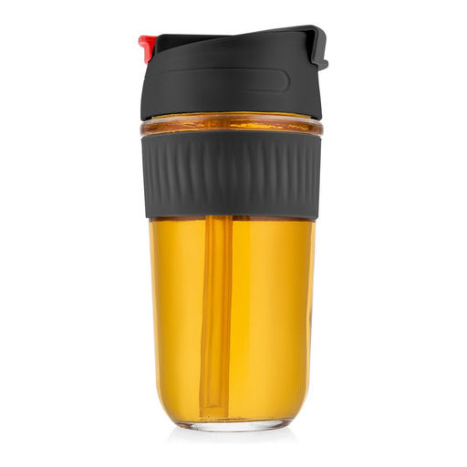 Кружка дорожная стеклянная Walmer Duality с двойной крышкой для питья, с трубочкой, 0.5 л, цвет черный