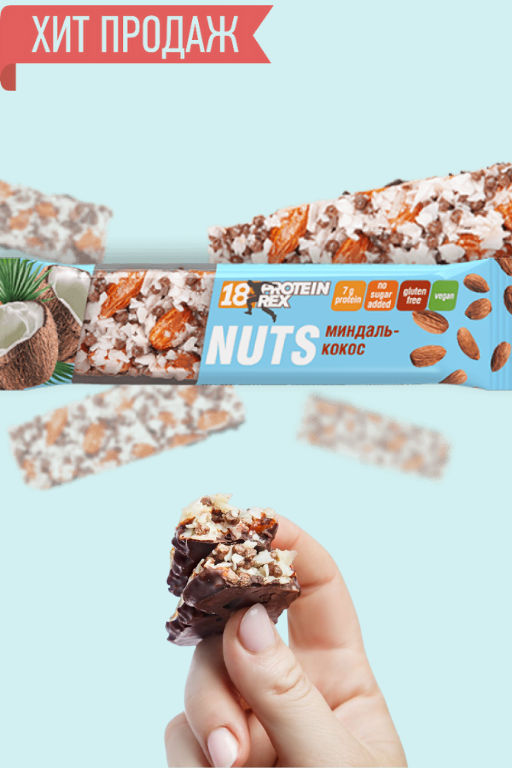 Батончик ореховый протеиновый NUTS МИНДАЛЬ-КОКОС, 40 г