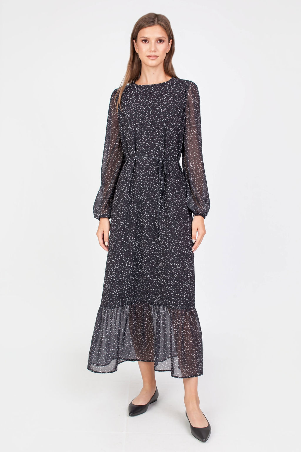 5-3014/783-5065-2 Платье принт белые штрихи на черном фоне