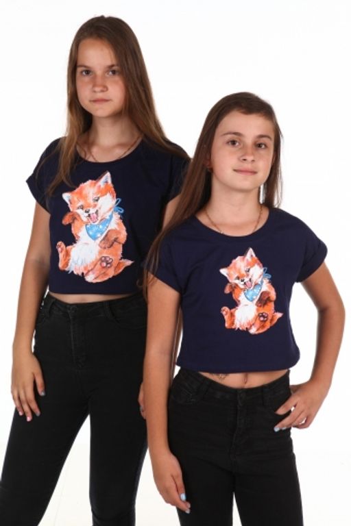 Короткая футболка Лисёнок (Темно-синий)