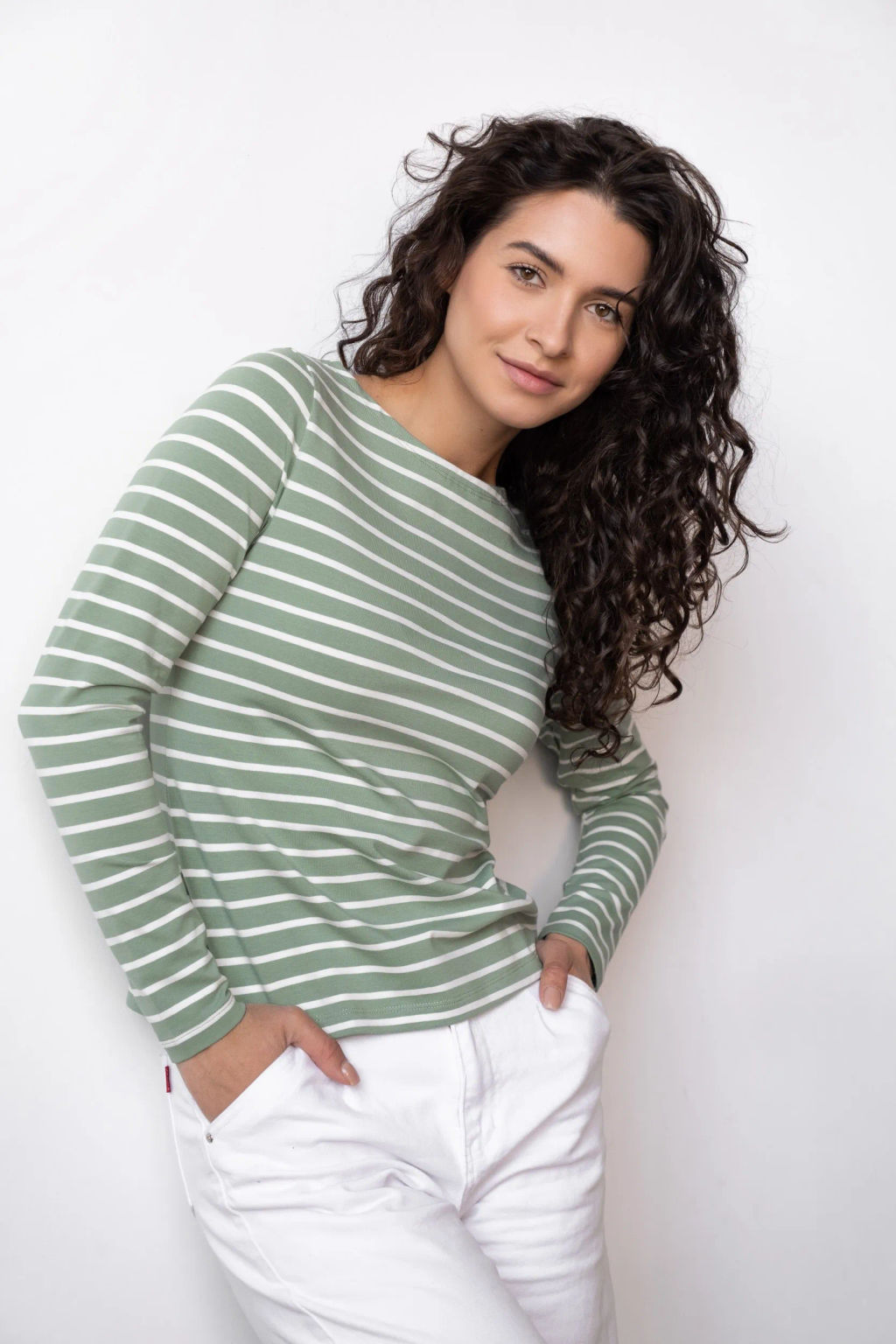 Лонгслив ДЖ 375п-6 Зеленый / экрю
