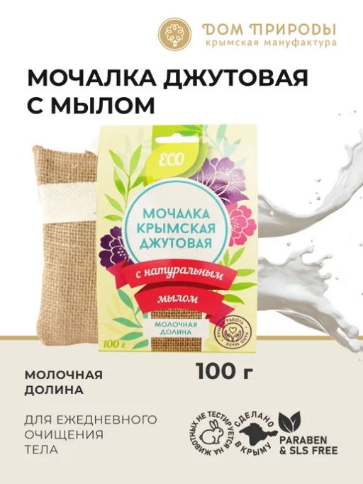Мочалка джутовая с мыльной стружкой, Молочная долина 100 г