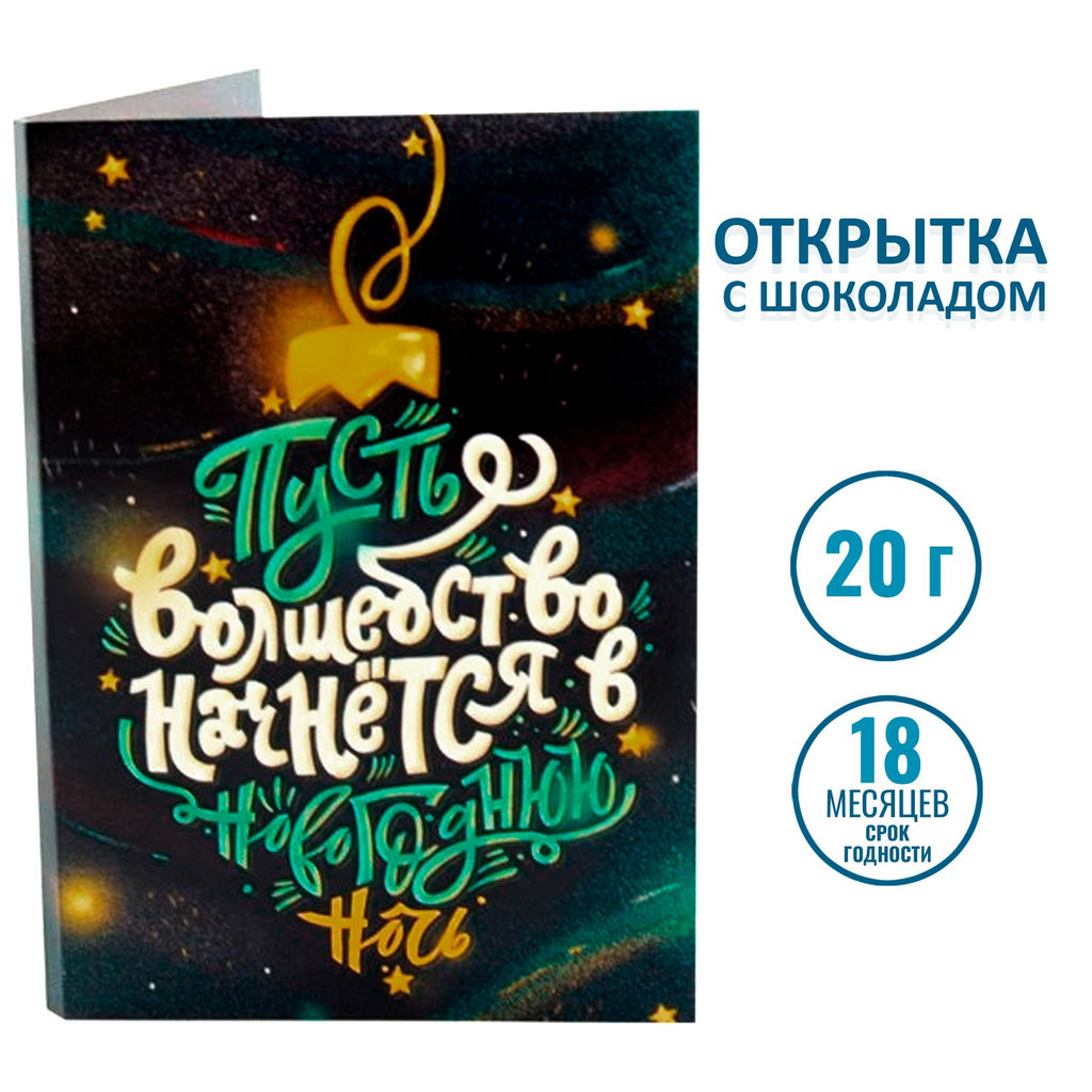 Открытка с шоколадом Пусть волшебство начнется в Новогоднюю ночь