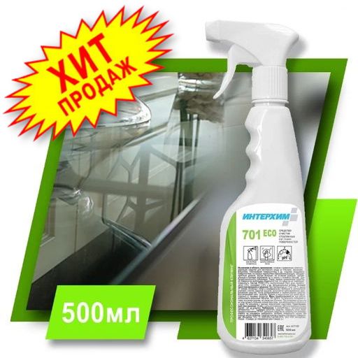 Интерхим для очистки стеклянных и других гладких поверхностей 701 ECO, 0,5 л+спрей