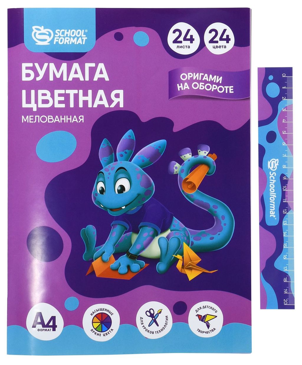 Бумага цветная Schoolformat мелованная 24 л. 24 цв. 60 г/м2 на скрепке