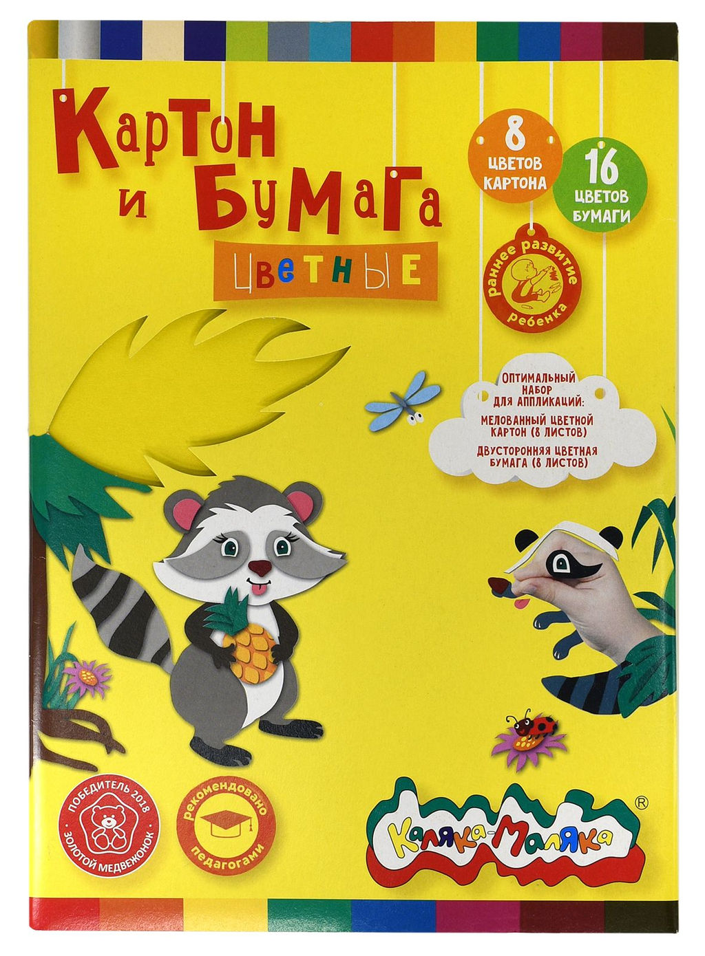 Набор картон цветной мелованный А4 Каляка-Маляка, 8 цветов 8 листов, 210 г/м2, +2-стороння...