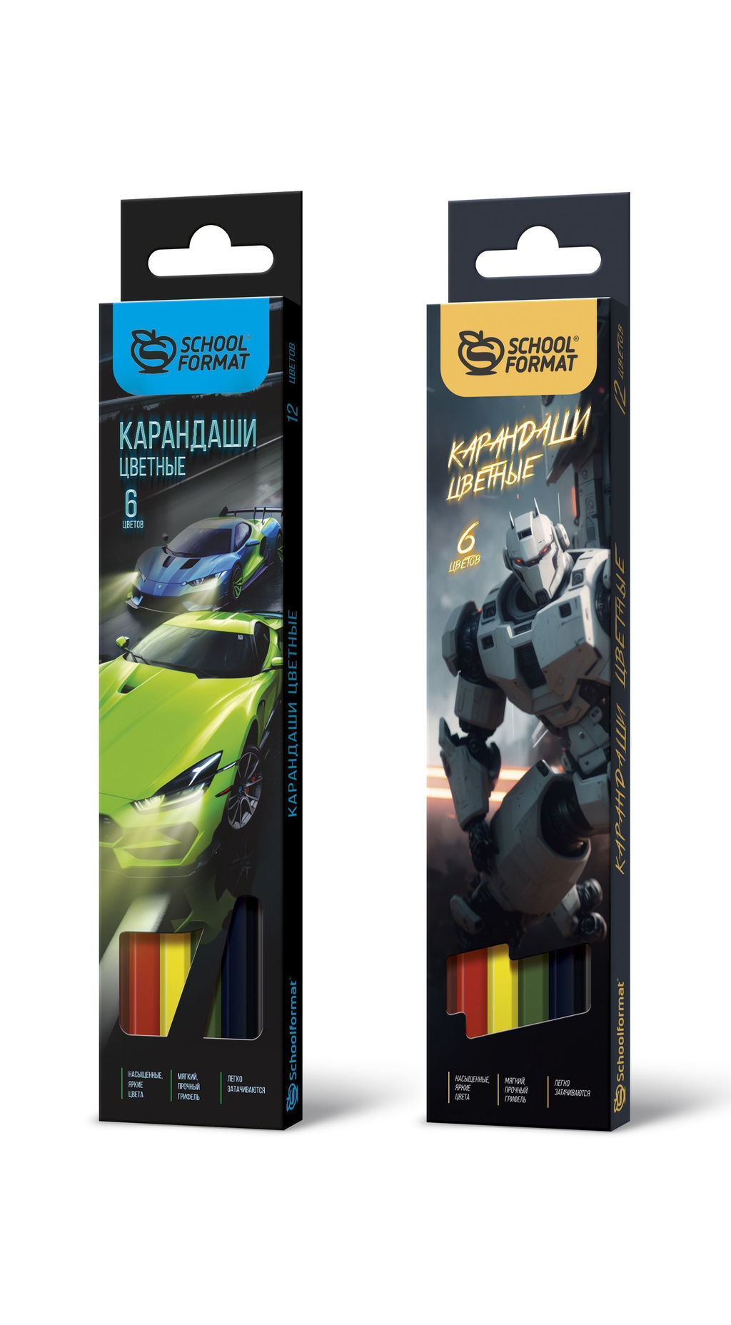 Набор цветных карандашей Schoolformat МИКС ДЛЯ МАЛЬЧИКОВ 6 цв. шестигранные, корпус деревя...