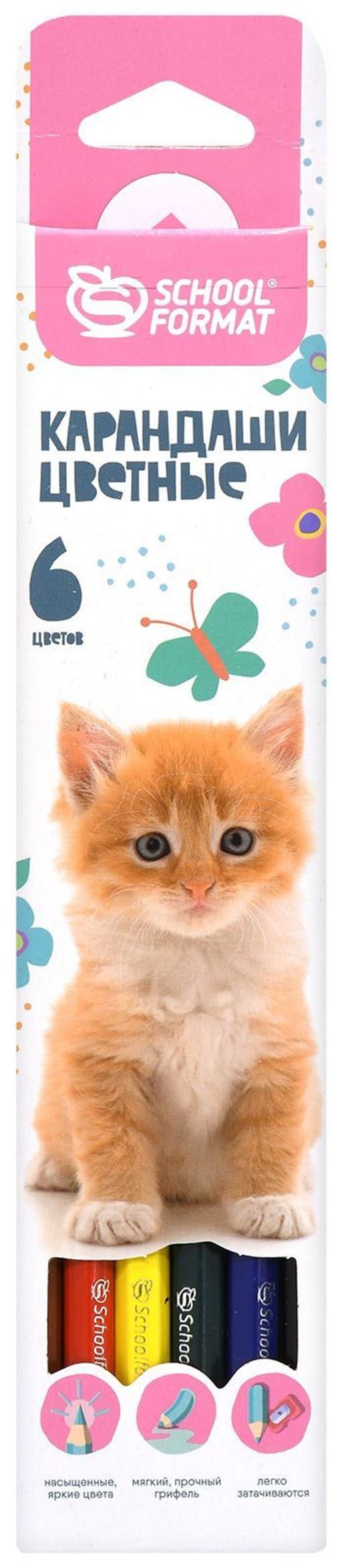 Набор цветных карандашей Schoolformat ПУШИСТЫЕ КОТЯТА 6 цветов, шестигранные
