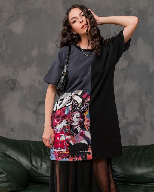Платье из футера с принтом PPN001