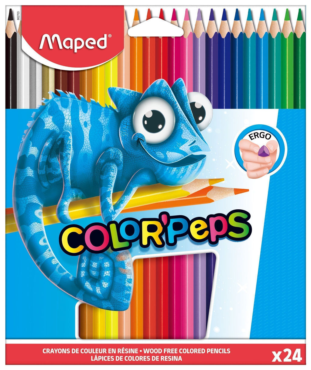 Карандаши цветные MAPED PULSE пластиковые, 24 цвета, трехгранные, в картонной коробке с по...