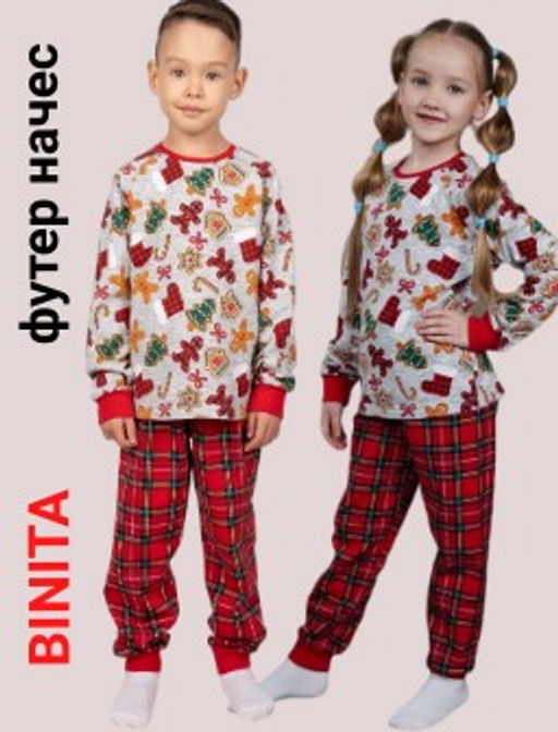 Пижама унисекс детская футер 2-х нитка набивной начес (хлопок 100%) арт.1087-1,красно-серая