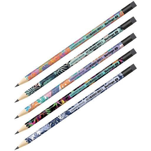 Цена за 2 шт. Карандаш ч/гр. BERLINGO "Jungle" HB, с ластиком (BP01307) заточенный