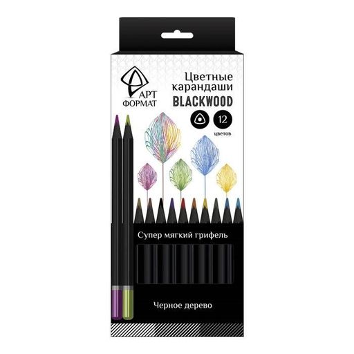 Карандаши АРТформат "Blackwood" 12цв., трехгранные (AF03-051-12, 179170) черное дерево