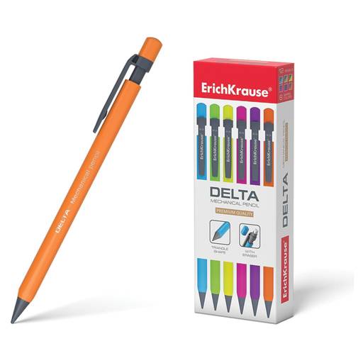 Карандаш автомат. ErichKrause "Delta" 0.5мм (22004) с ластиком, трехгранный корпус, ассорти