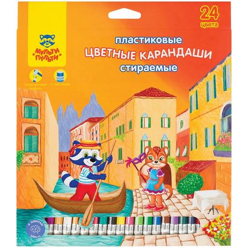 Карандаши Мульти-Пульти "Енот в Венеции" пластиковые 24цв., стираемые, с ласт. (СР_19848)