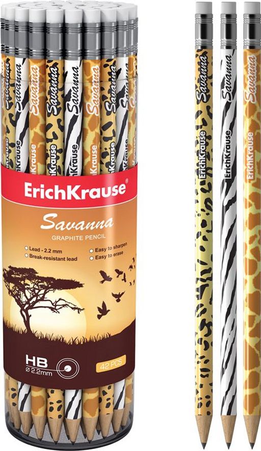Цена за 2 шт. Карандаш ч/гр. ErichKrause "Savanna", НВ, с ластиком (45620)