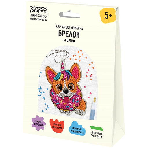 Алмазная мозаика 7*9,5см "Брелок. Корги" (АМБ_48252, "ТРИ СОВЫ") частичное заполнение
