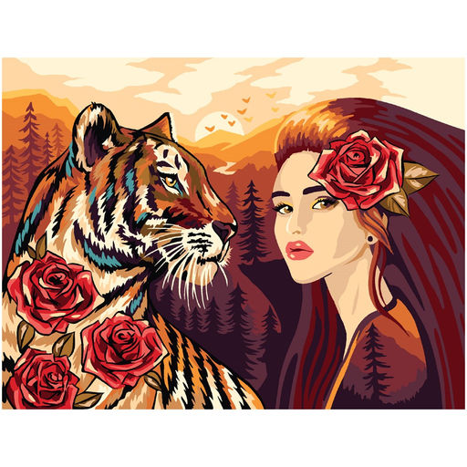 Картина по номерам на картоне "Девушка с тигром" 30*40см (КК_53807) ТРИ СОВЫ, с акриловыми красками