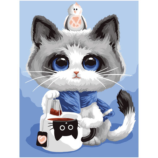 Картина по номерам на картоне "Котик и пингвин" 30*40см (КК_53777) ТРИ СОВЫ, с акриловыми красками