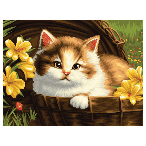 Картина по номерам на холсте "Котенок в корзине" 30*40см (КХ3040_53844) ТРИ СОВЫ, с акриловыми красками
