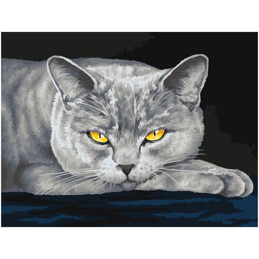 Картина по номерам на холсте "Серый кот" 30*40см (КХ3040_53834) ТРИ СОВЫ, с акриловыми красками