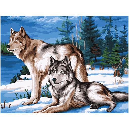 Картина по номерам на холсте "Волчья семья" 40*50см (КХ4050_53892) ТРИ СОВЫ, с акриловыми красками