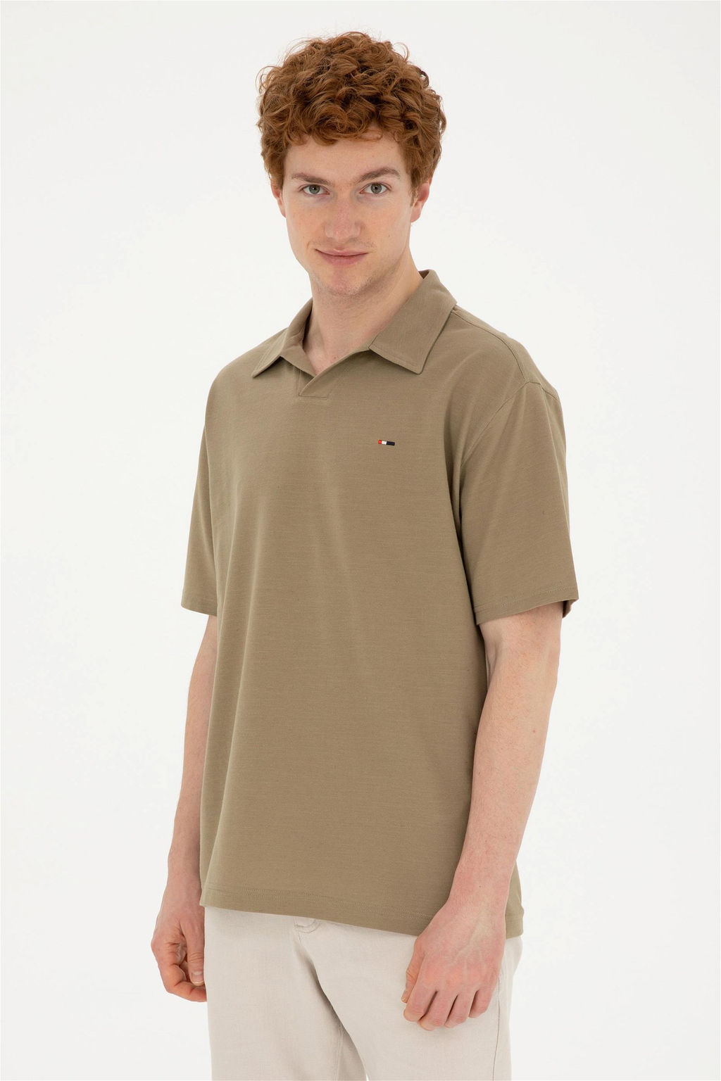 Футболка U.S. Polo Assn цвета хаки из хлопка с полиэстером