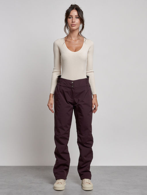Брюки утепленные спортивные с высокой посадкой женские зимние темно-бордового цвета 7141Tb