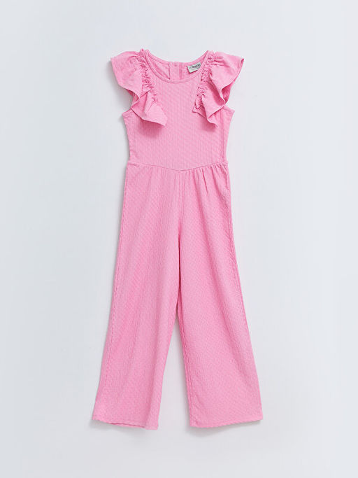 Bisiklet Yaka Kendinden Desenli K?sa Kollu K?z ?ocuk Tulum
