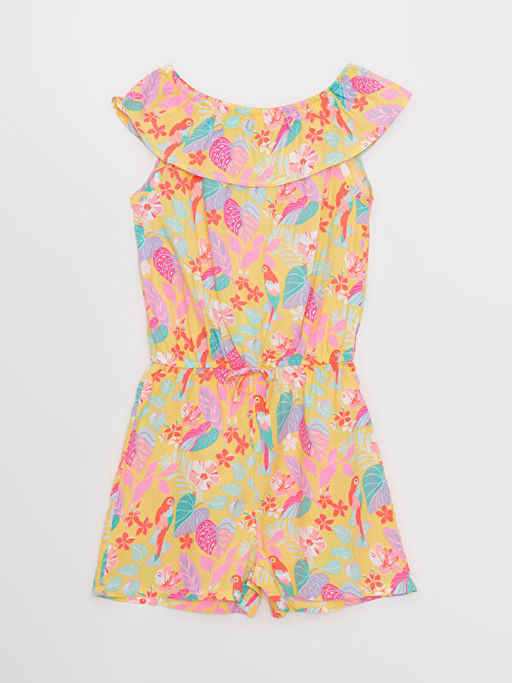 Kay?k Yaka Desenli Viskon K?z ?ocuk Tulum