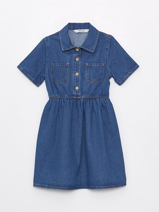 K?sa Kollu K?z ?ocuk Jean G?mlek Elbise