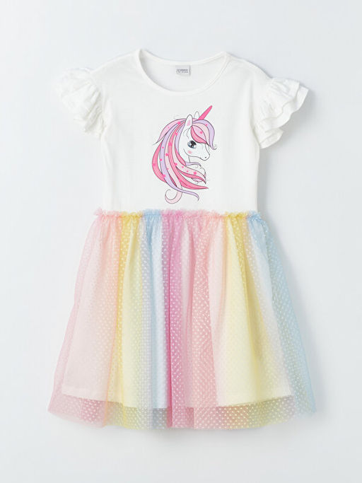 Bisiklet Yaka Bask?l? K?z ?ocuk Elbise