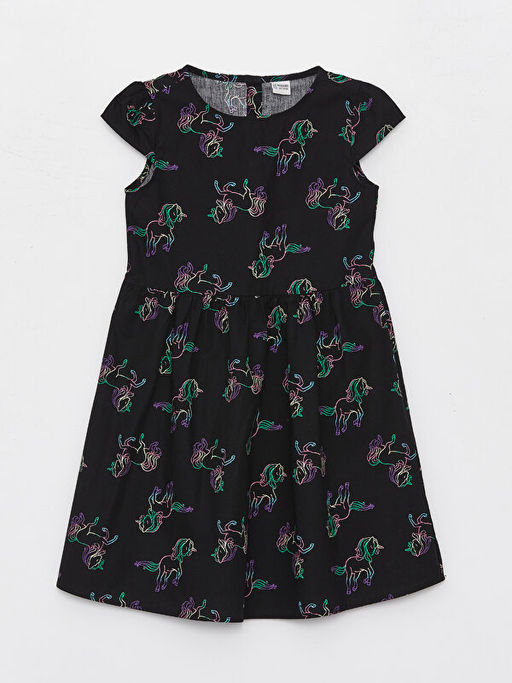 Bisiklet Yaka Desenli K?sa Kollu K?z ?ocuk Elbise