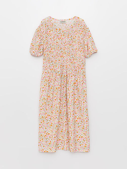 Bisiklet Yaka Desenli K?sa Kollu K?z ?ocuk Elbise