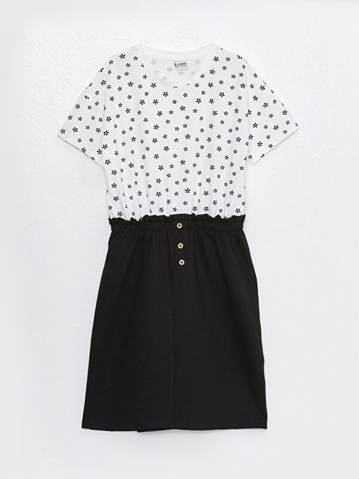 Bisiklet Yaka Bask?l? K?sa Kollu K?z ?ocuk Elbise