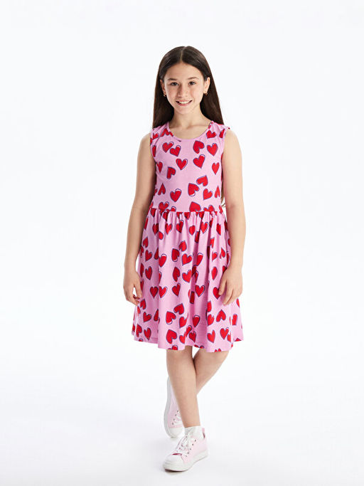 Bisiklet Yaka Bask?l? K?z ?ocuk Elbise