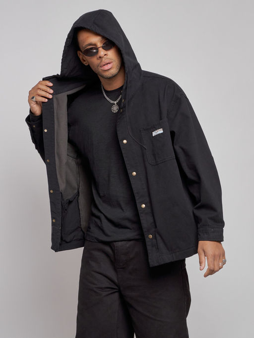 Джинсовая куртка мужская с капюшоном черного цвета 12768Ch