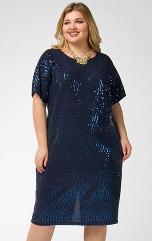 Роскошное женское платье свободного силуэта из трикотажа с пайетками