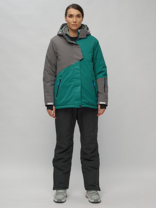 Горнолыжный костюм женский большого размера темно-зеленого цвета 02278TZ