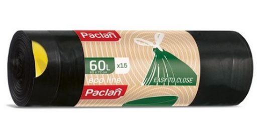 Мешки для мусора с тесьмой ECO LINE 60л 15шт. (ПВД) (черный)