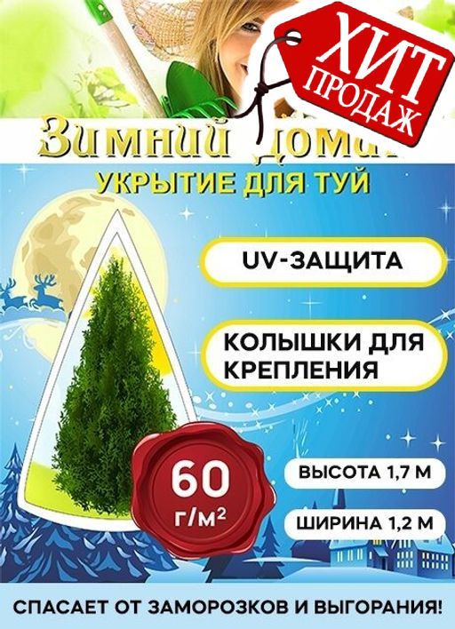 Укрытие для туи на зиму Зимний Домик с завязками ( ВхШ: 1,7 х 1,2м )