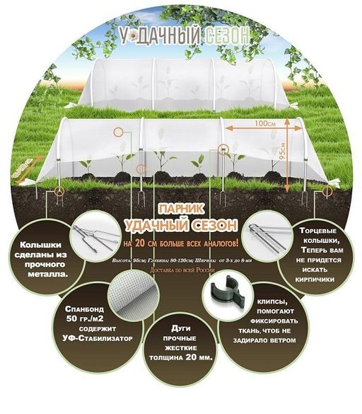 Парник из дуг с укрывным материалом 60 г/м? Удачный Сезон 4 м