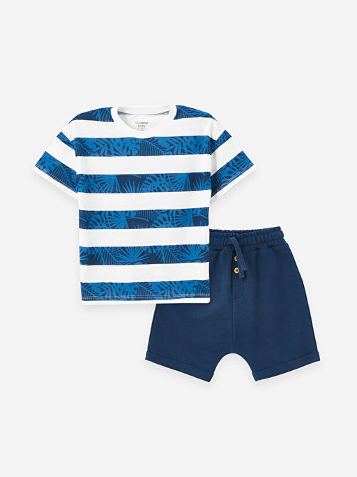 Bisiklet Yaka Bask?l? Erkek Bebek Ti??rt ve ?ort 2li Tak?m