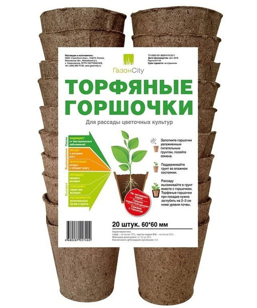 Торфяные горшочки 60*60 мм (упаковка 20 шт) ГазонCity