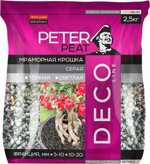 Мраморная крошка Темно-серая, фракция 5-10, 15 кг, линия Деко