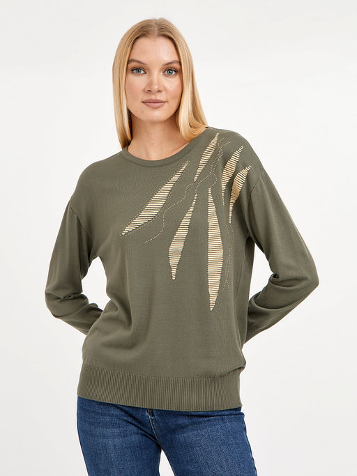 джемпер женский в цвете хаки со спущенной линией плеча
